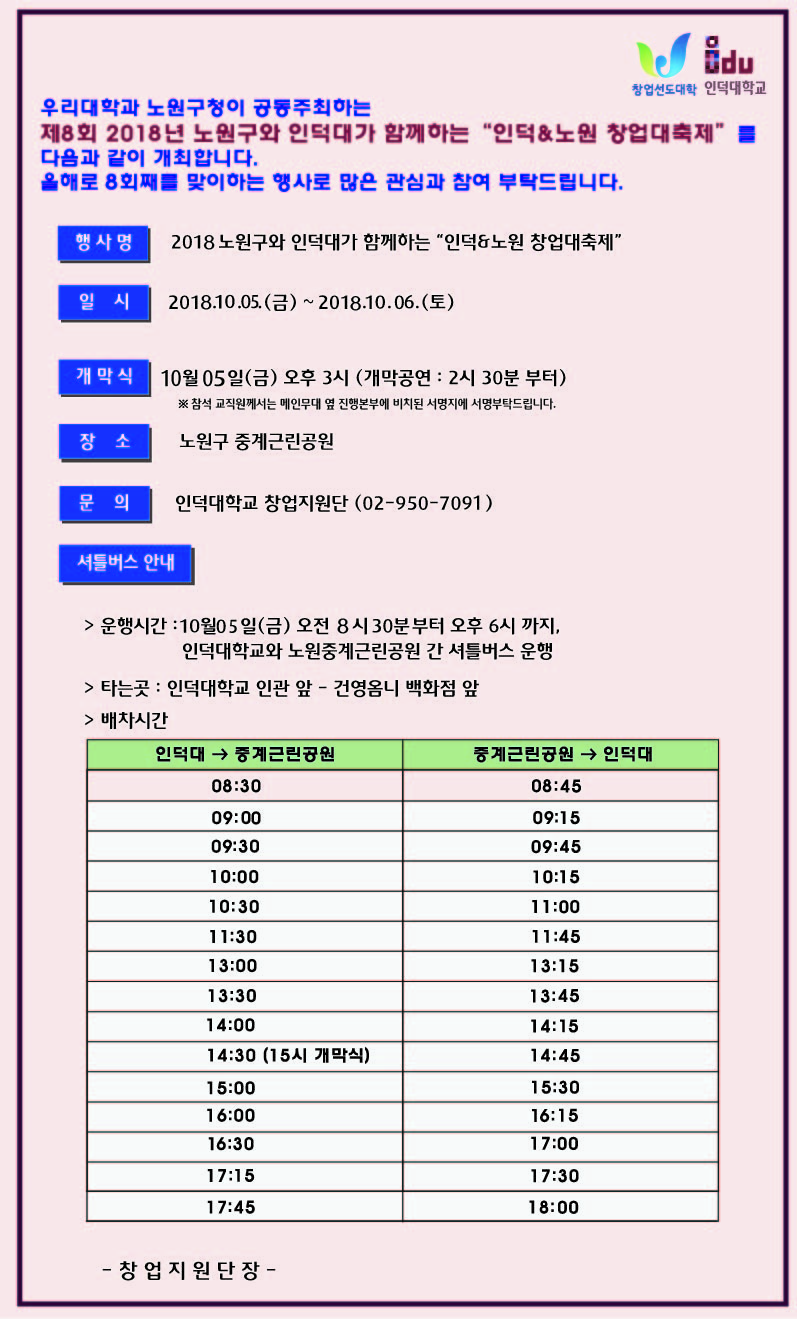 - 문 의 : 인덕대학교 창업지원단(02-950-7091)